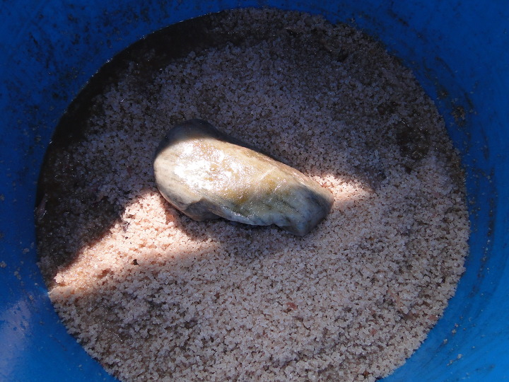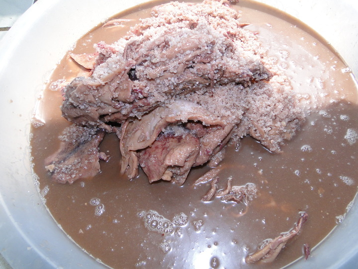 오징어를 다 건저내면 이렇게 소금이 많이 남습니다.