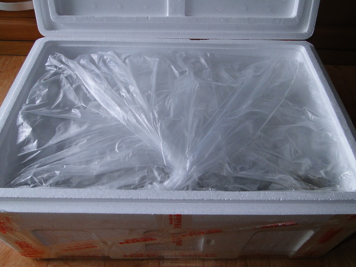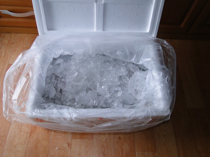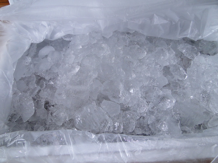 얼음을 밑에 깔고 비닐에 담은 오징어를 넣은 다음 다시 얼음을 위에 얹어서 냉동고에 넣으셨나봅니다.
