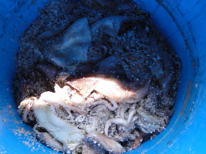 대략 오징어 한 짝에 소금은 3킬로 들어간다고 보시면 됩니다.