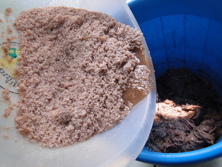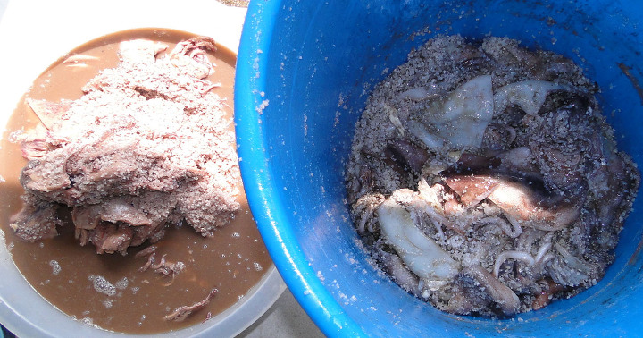 통에 있던 묵은 오징어젓을 다른 그릇에 쏟고