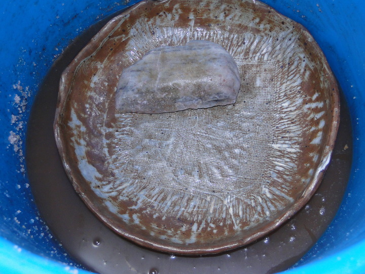 작년부터는 다시 안 깰라고 프라스틱 통에 담갔습니다.