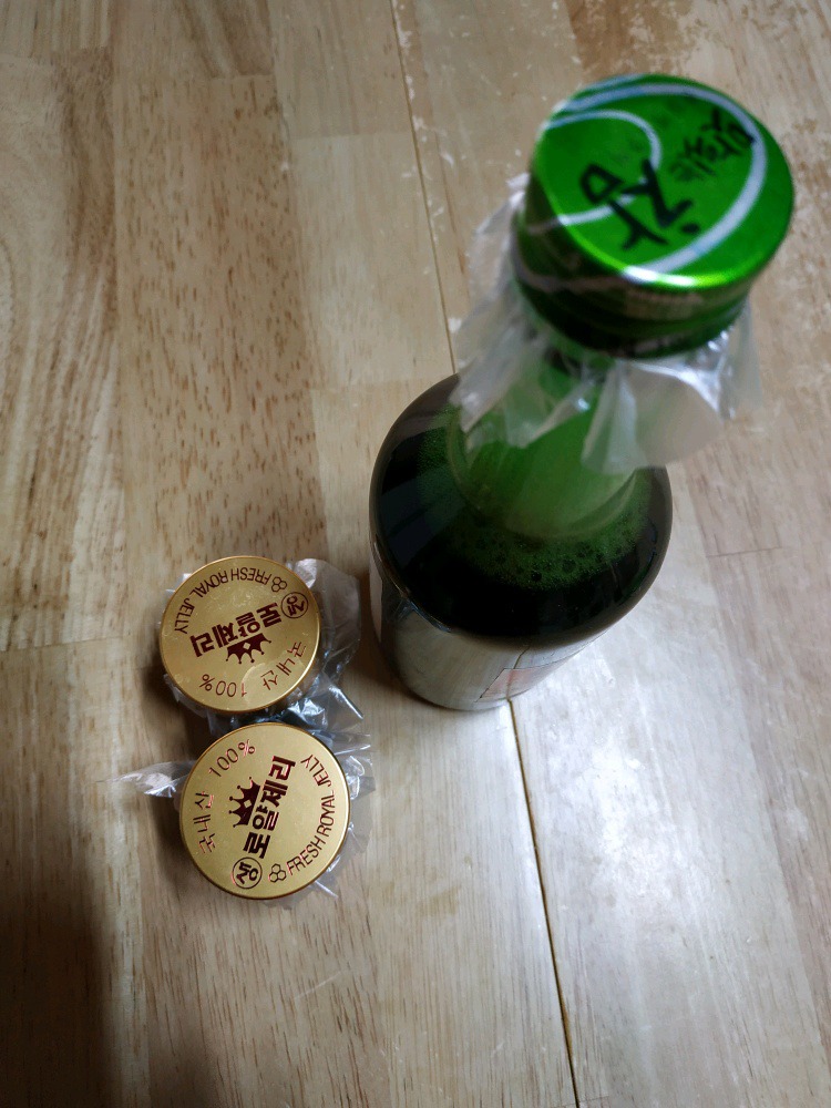 소주병 1개. 30ml 들어가는 로얄제리병 2개 나왔습니다.