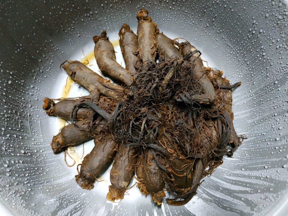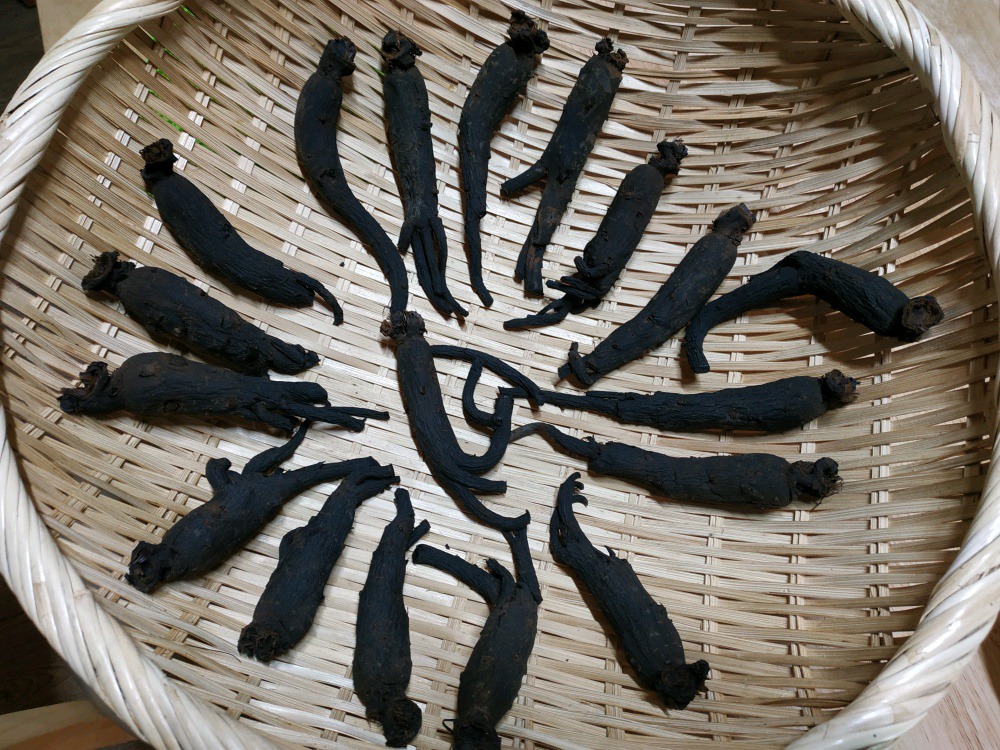 잔뿌리는 홍삼보다 흑삼에 가깝게 검어졌습니다.