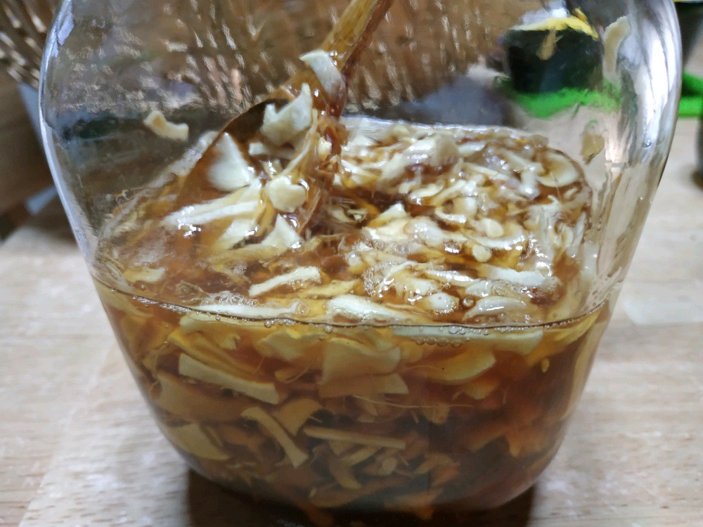 밤꿀에 재워두었습니다.(남편 몫이지요 ㅎㅎ 수삼이 안 받을까 봐 아주 소량씩 먹으라 했습니다.)