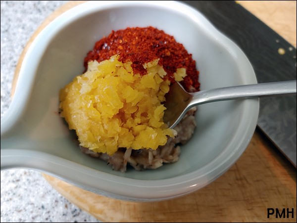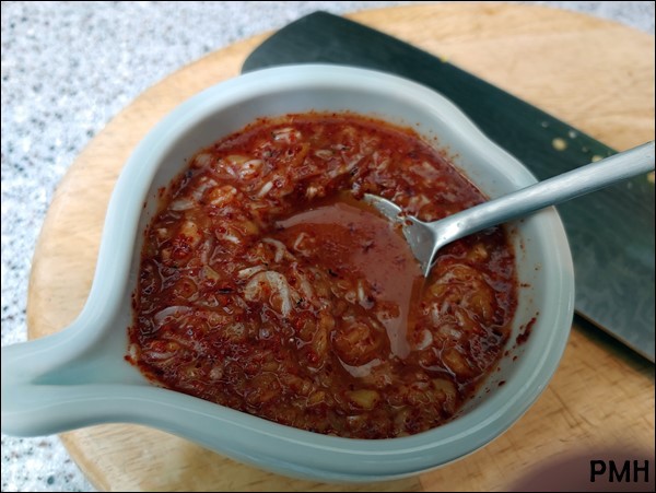 마늘 한큰술과 고춧가루 한큰술반을 넣고