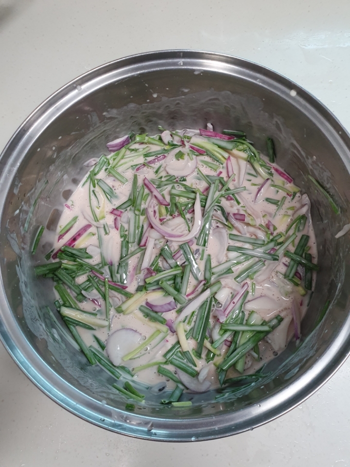 꾸물꾸물 장마라서 부침개로 점심대용했습니다