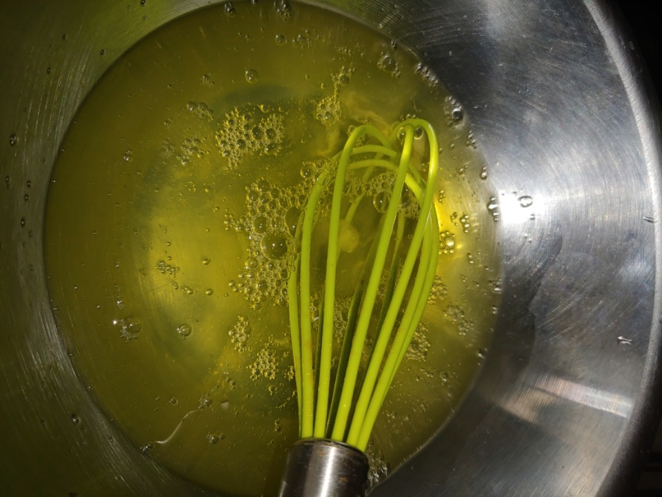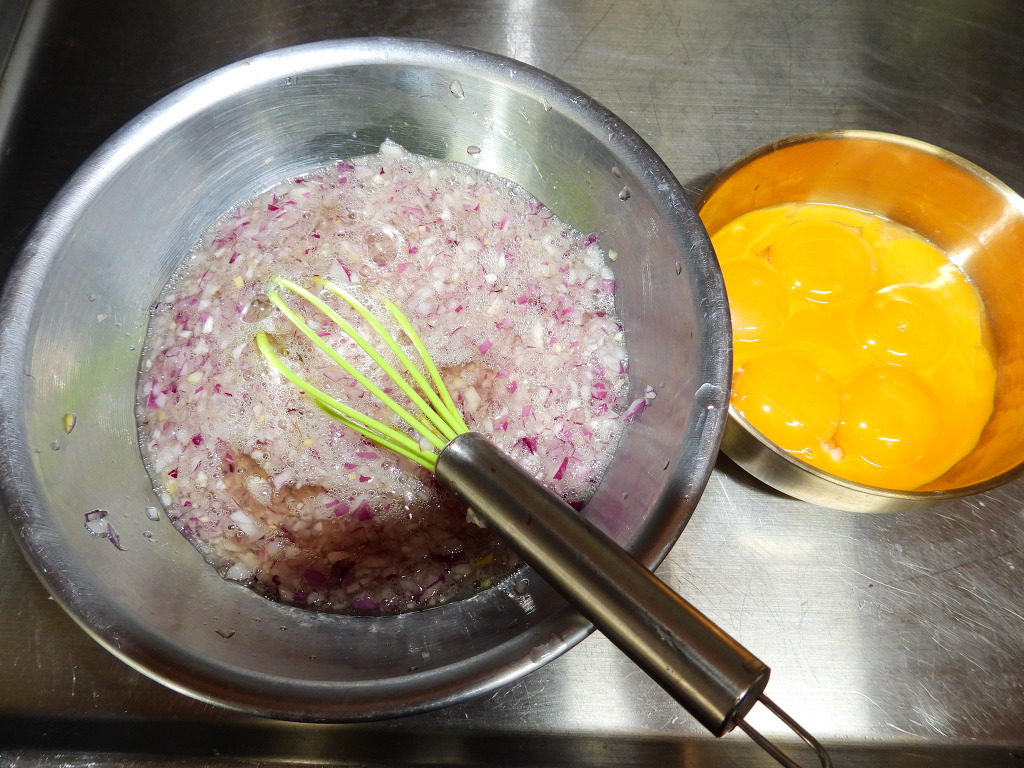 ↑양파달걀을 젓갈에 넣고 잘 저어줍니다.
