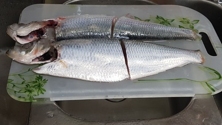 손질 끝낸 준치를 반 가르고,