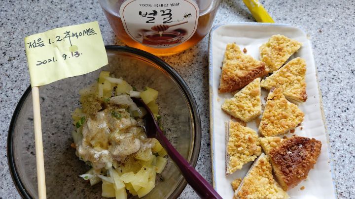볼품은 없어도 먹다만 빵 그냥 먹는것보다는 훨씬 기분도 맛도 짱입니다.