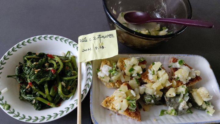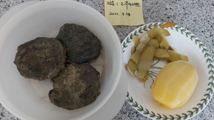 점심 대용으로 쑥개떡을 먹자고 렌지에 세개 돌렸는데