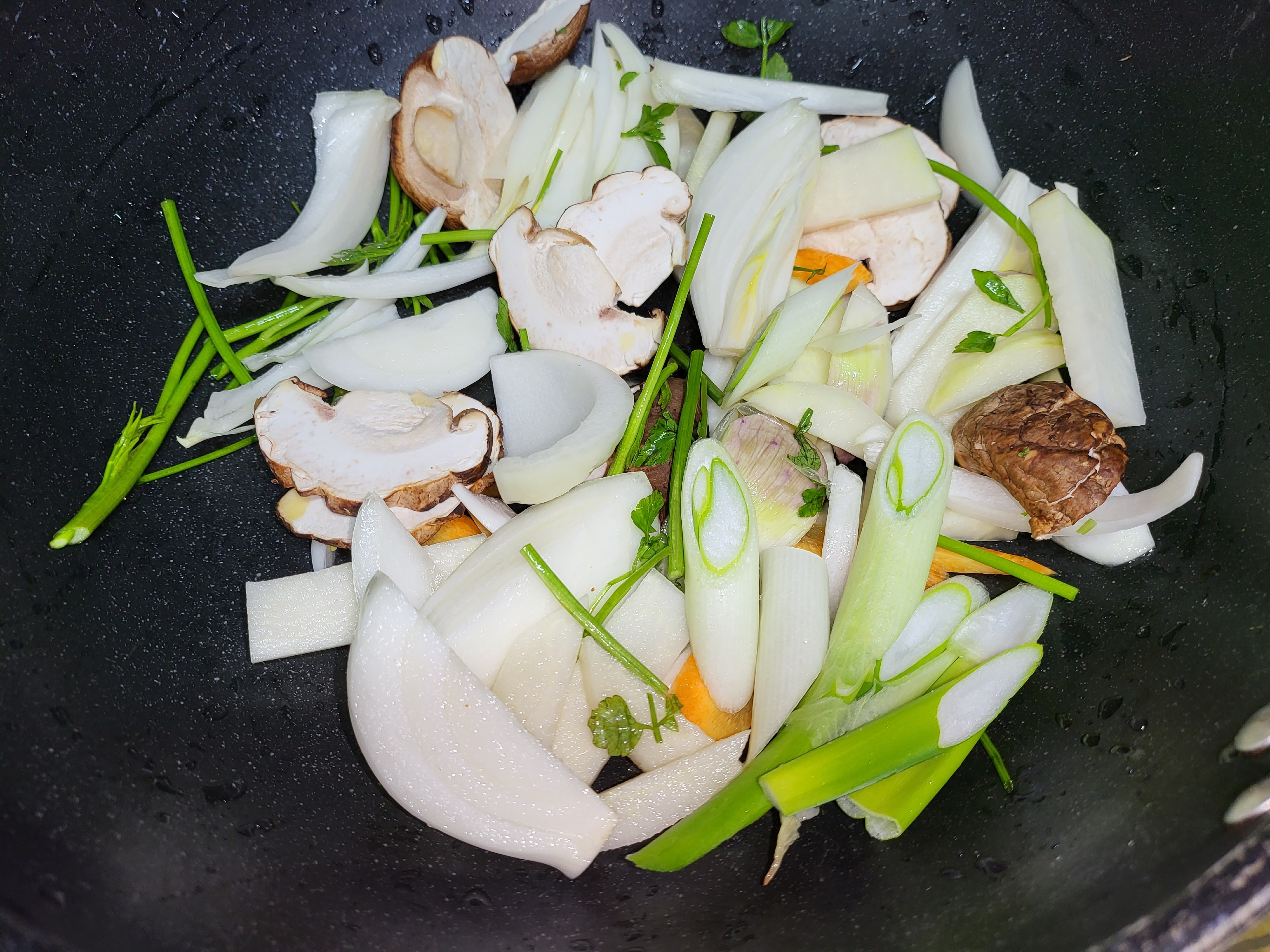 웍에 기름을 두르고 야채를 볶아줍니다.