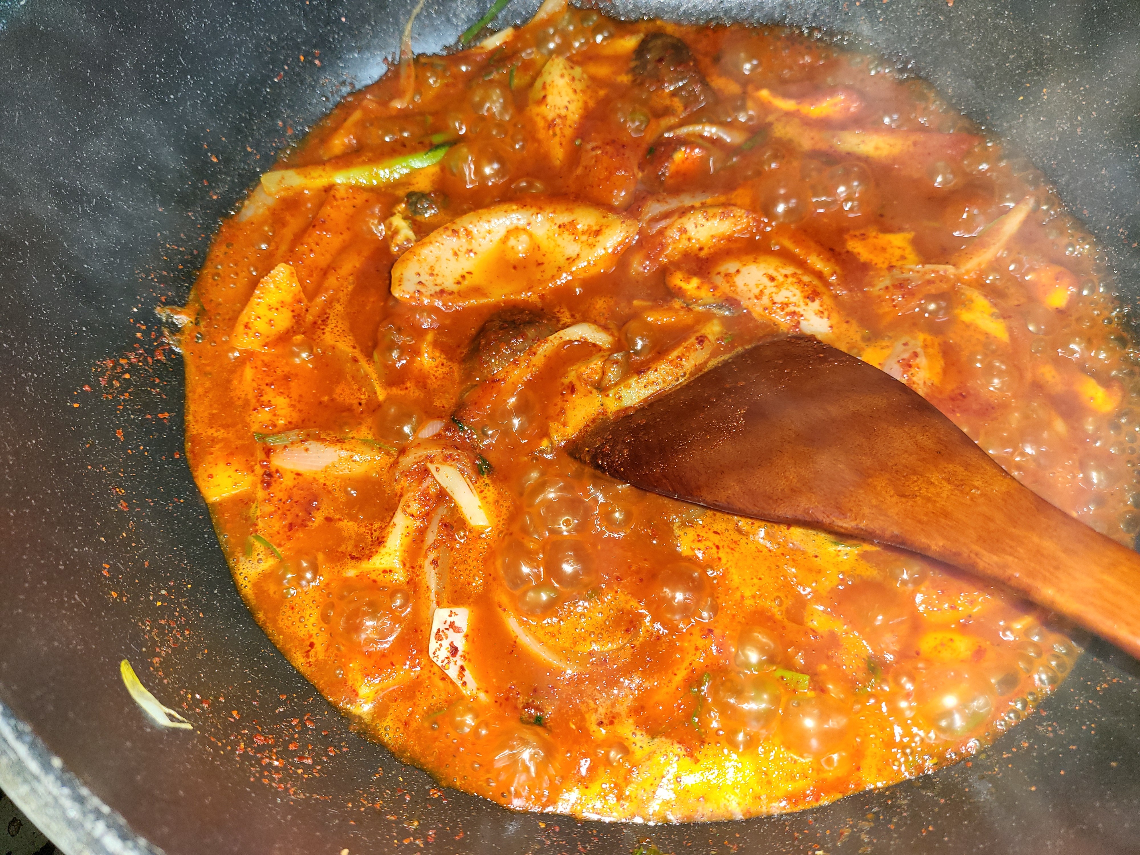 고구마 전분도 복어 삶은 물에 풀어서 넣습니다.