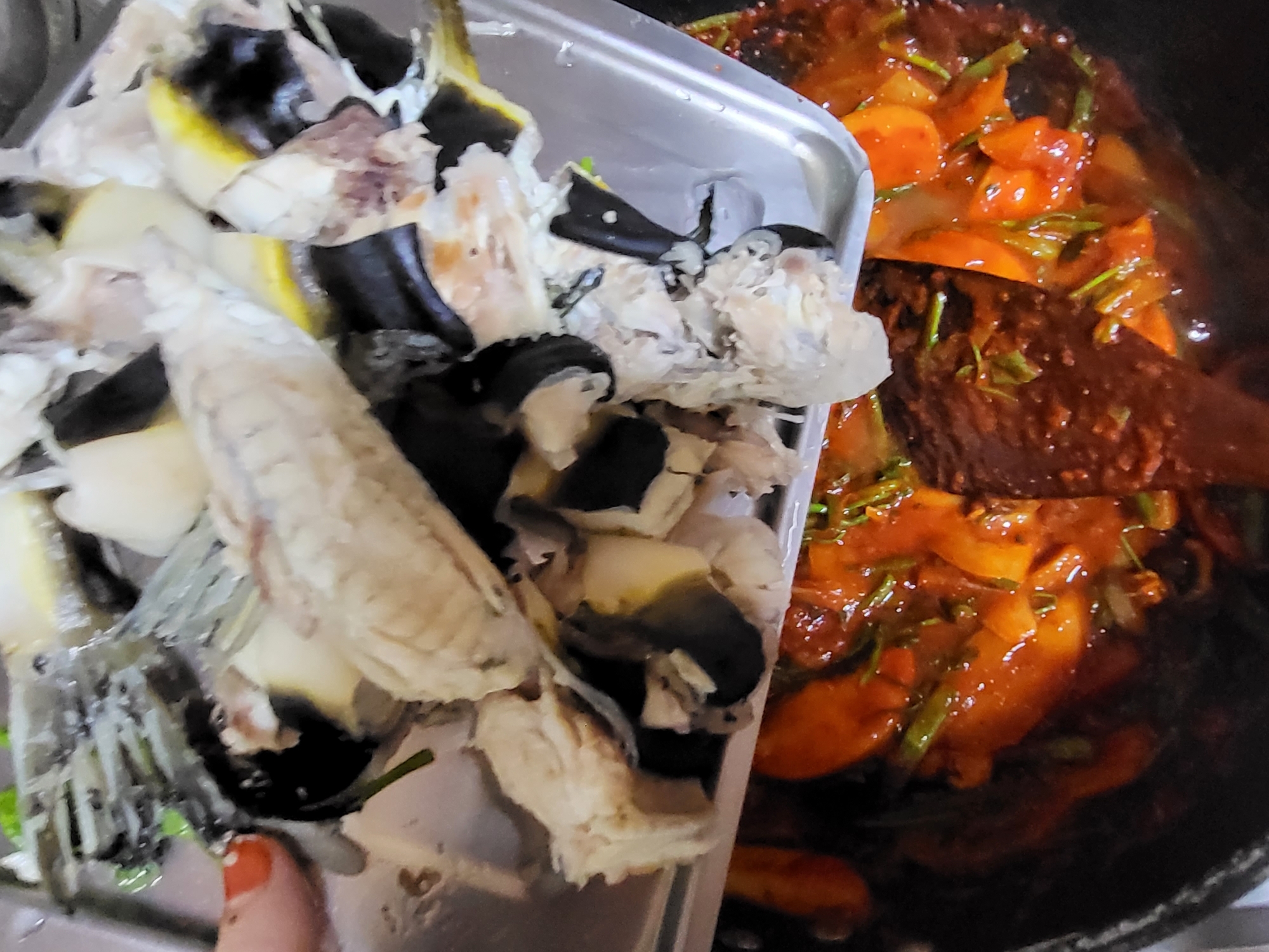 복어를 토막 내서 끓여도 되지만 이게 살도 뼈도 엄청 단단한 물고기라
