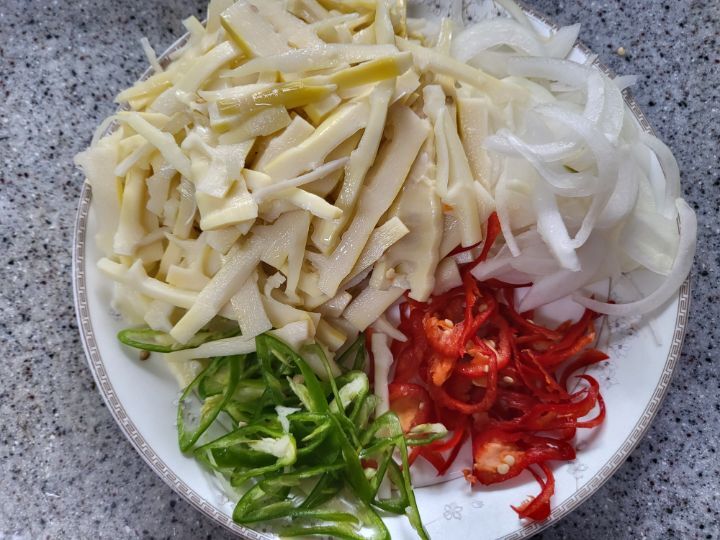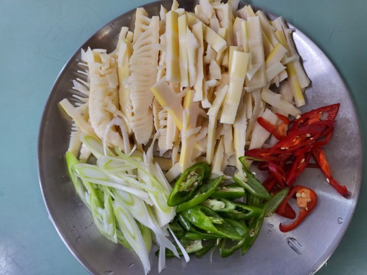 죽순,청양, 홍고추,대파 채썰어