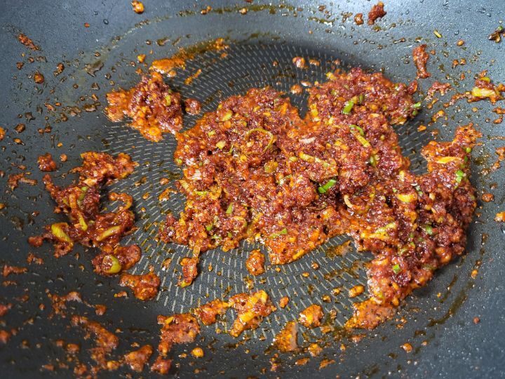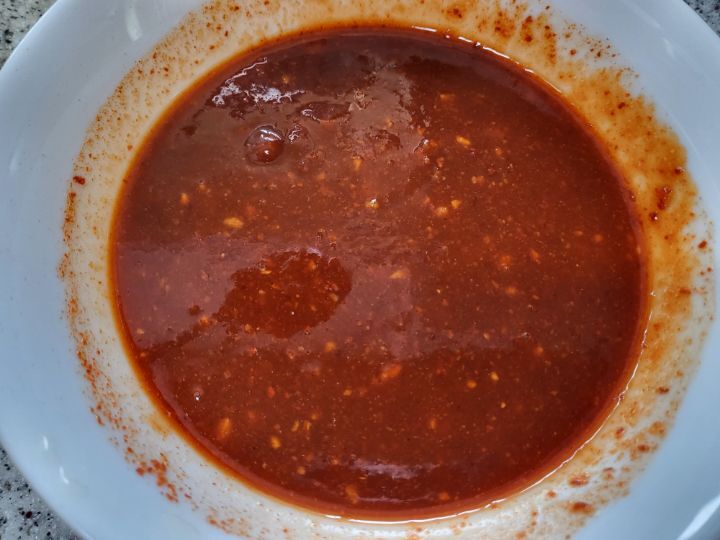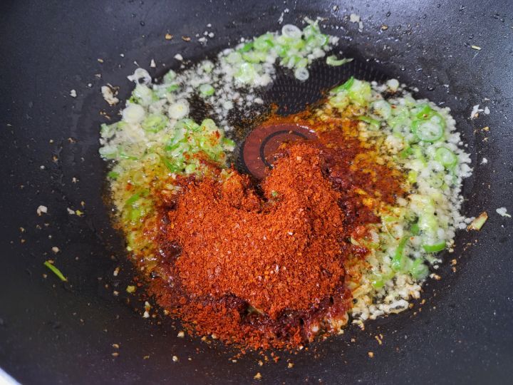 파기름에 고춧가루 넣어