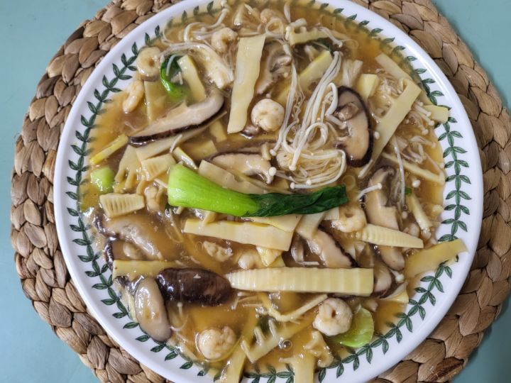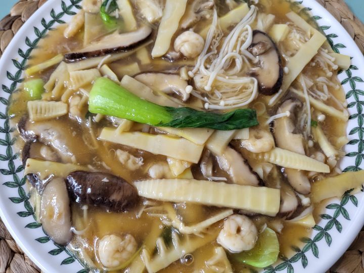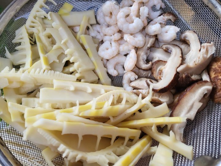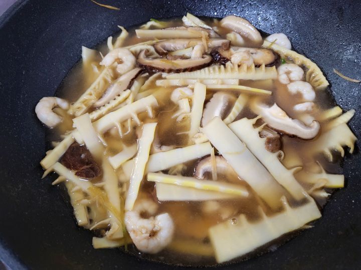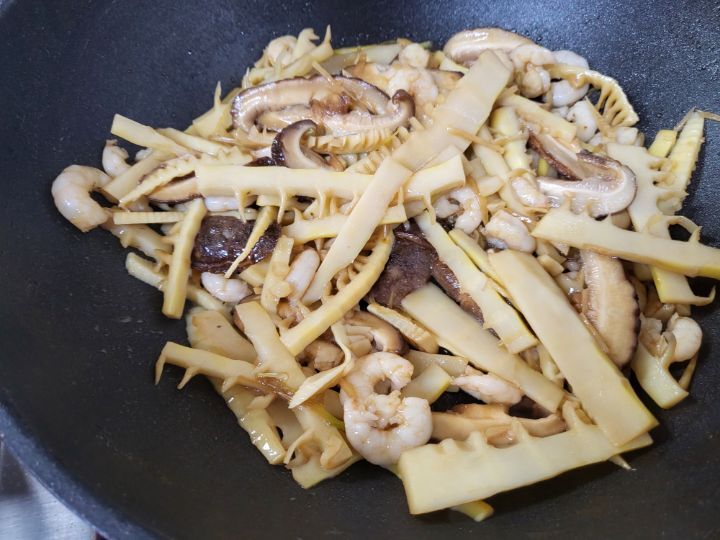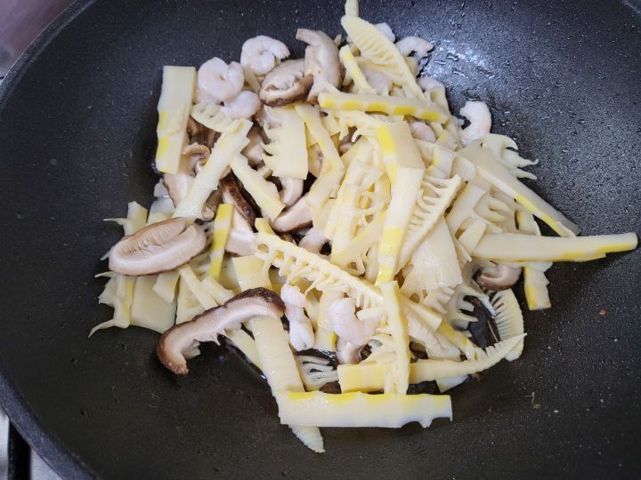 죽순,표고,새우를 넣어 볶아주고