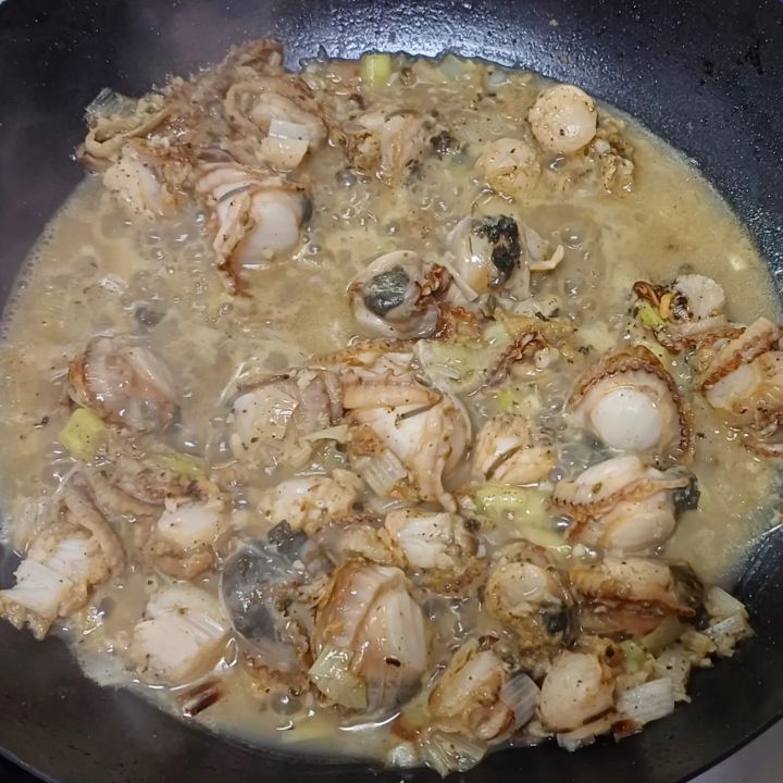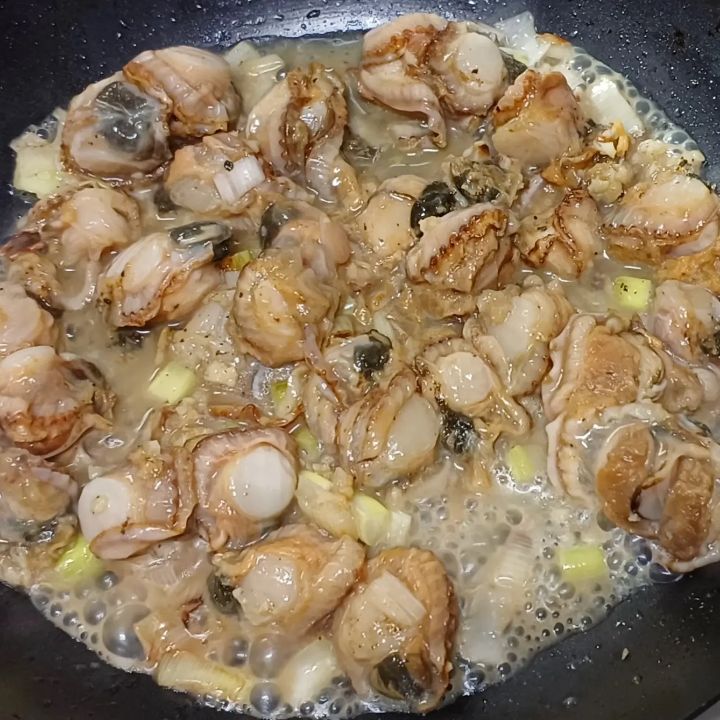 올리브오일 넣고 대파.간마늘에 가리비 볶아요