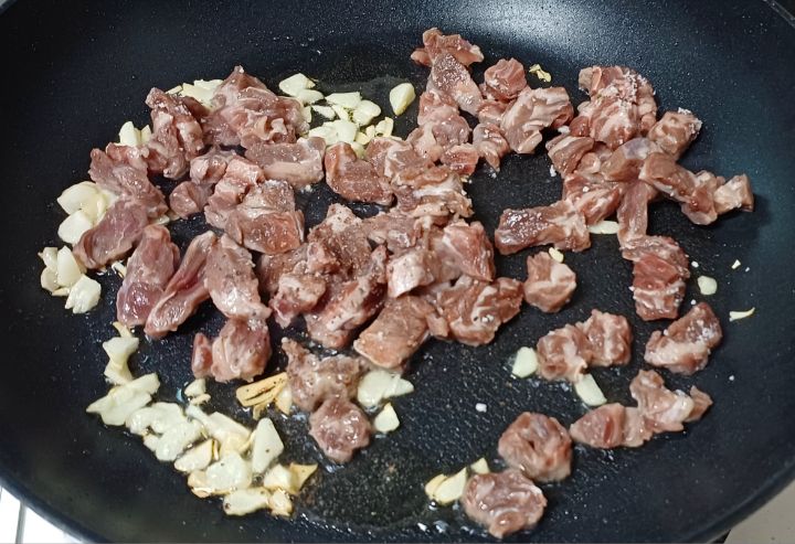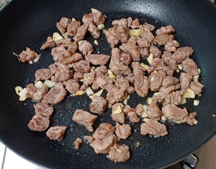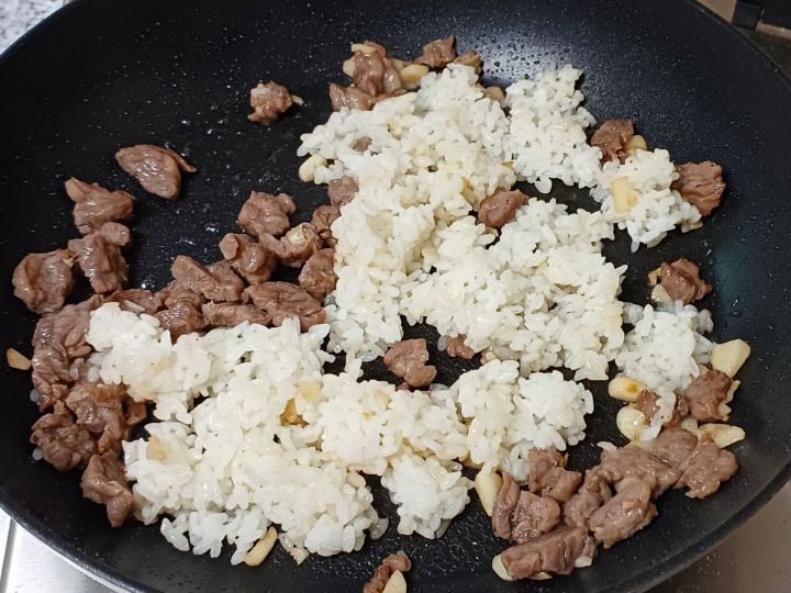 익혀진 마늘에 소고기넣고 볶아요