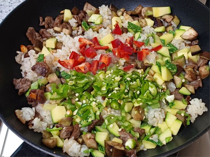 볶아놓은 호박.가지.넣고