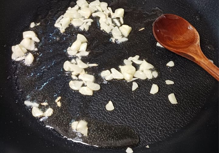 오일에 마늘 볶아요