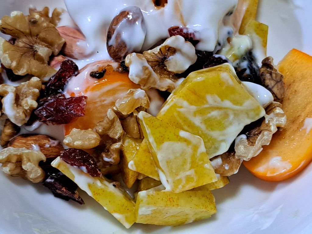 샐러드에는 껍질을 벗겨서 썰어 넣었지요.
