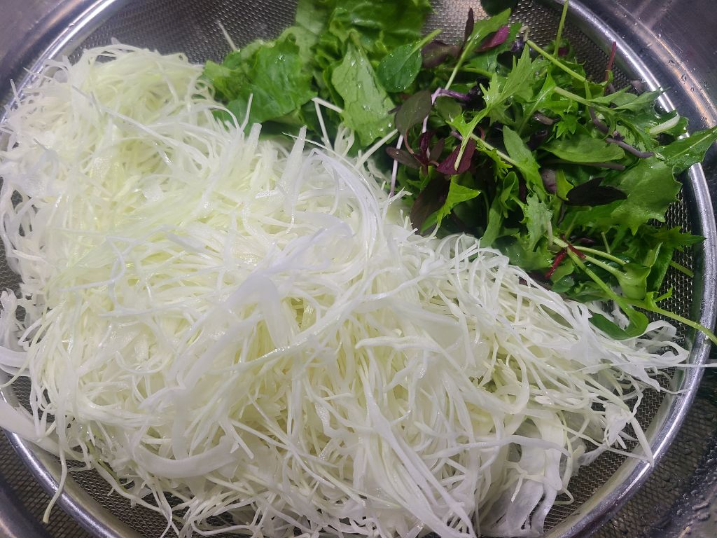 양배추 채썰고 어린잎,로메인 준비합니다