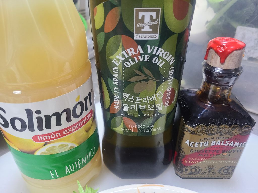 소스는 레몬즙,발사믹식초,올리브오일입니다
