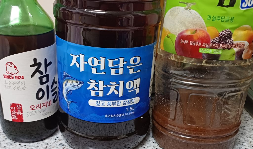 참기름.멸치액젓.참치액젓.다싯물.마늘.입니다