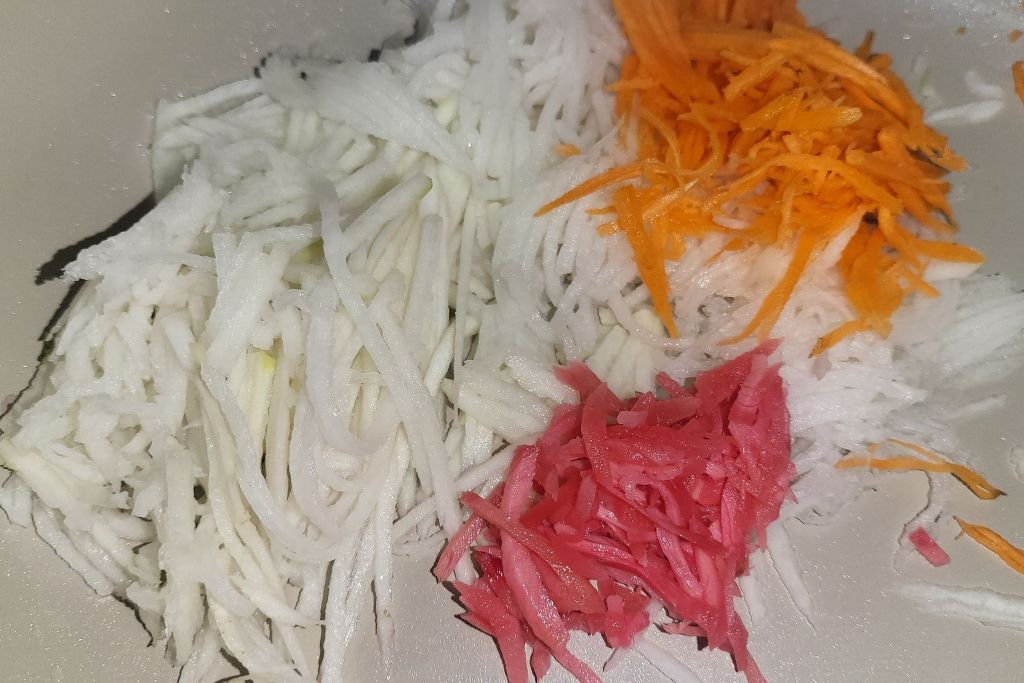 당근과 무채를 준비합니다.