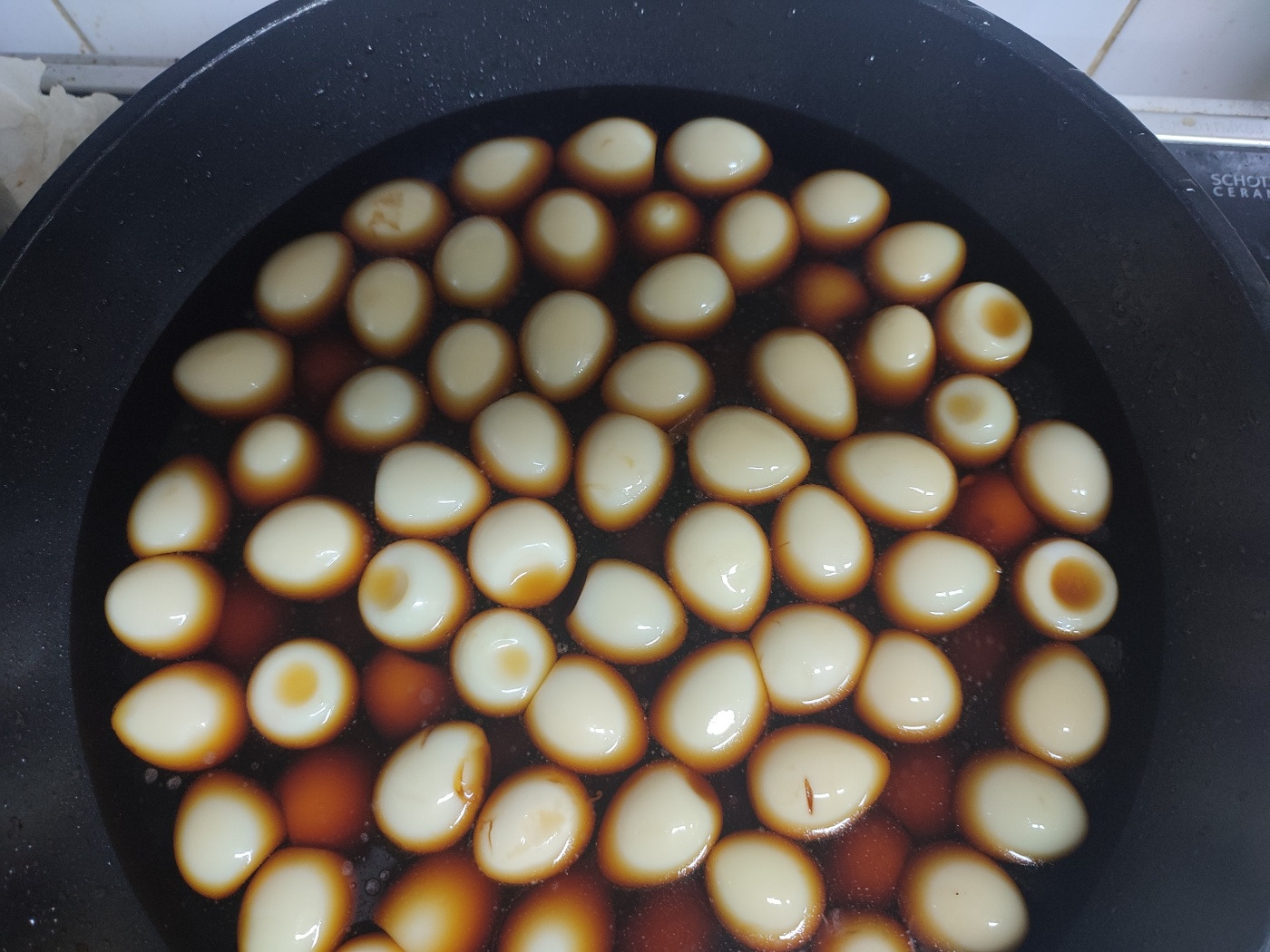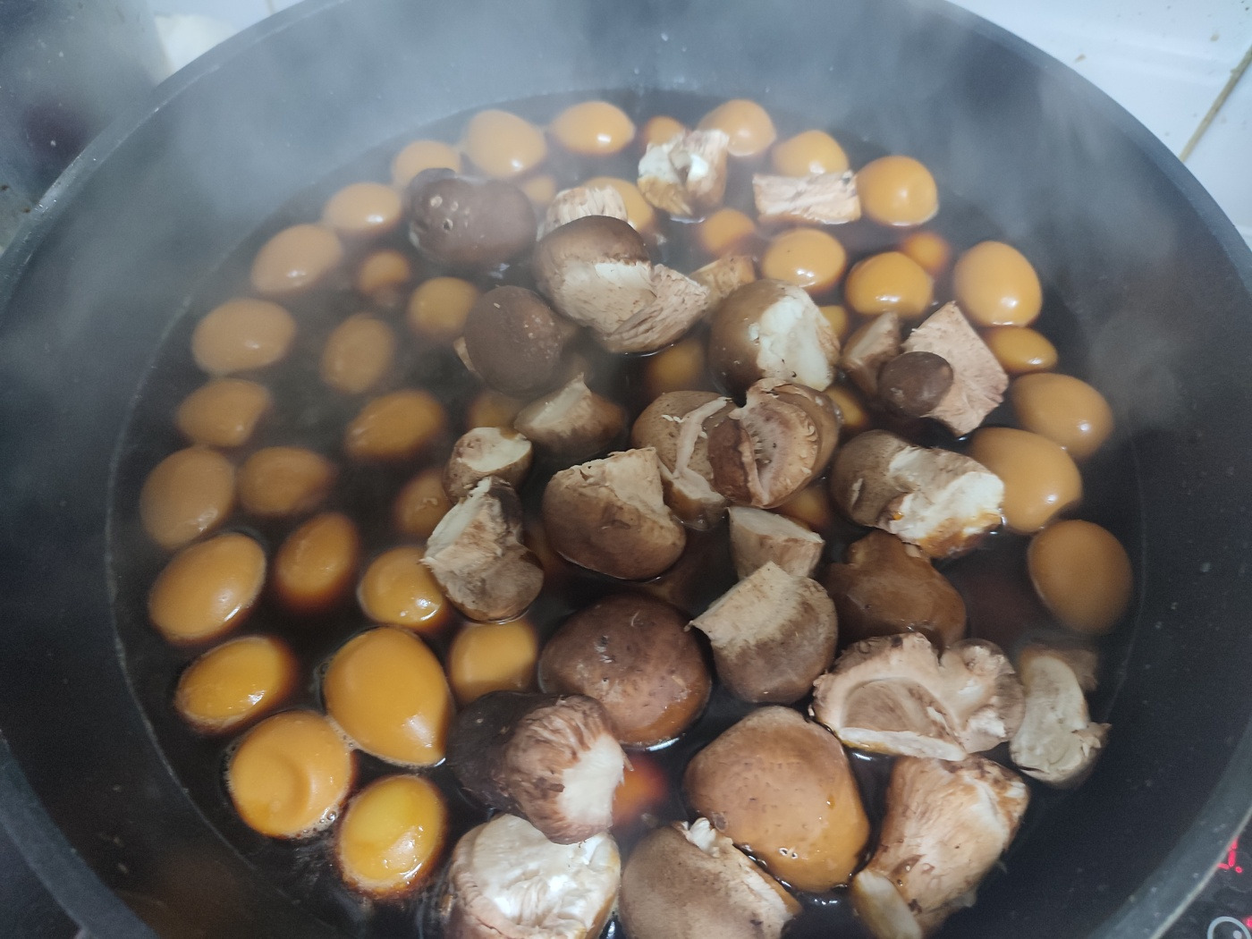 첫번째 요리는 버섯 장조림, 간장 물 설탕만 넣고 메추리알 먼저 삶다가