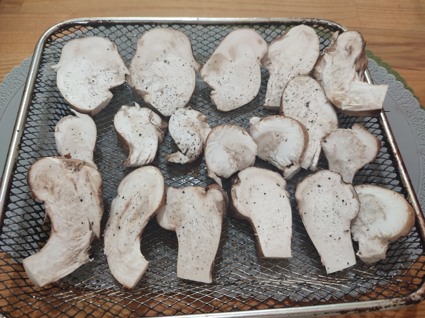 두번 째 요리는 참송이 무침. 에프에다가 소금 후추 살짝 뿌려서 180도에서 10분만 구웠어요