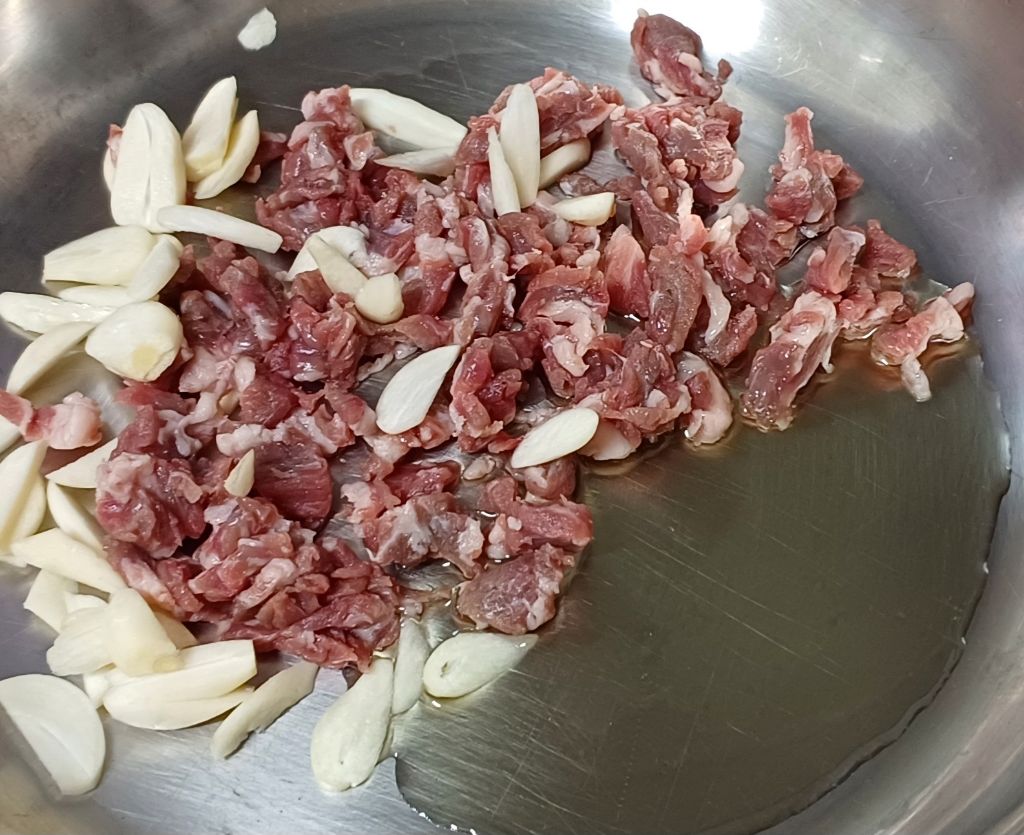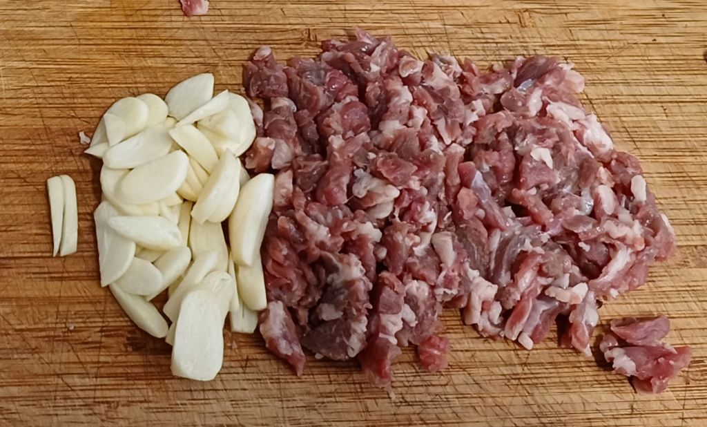 동부축산 갈비살 잘게 썰고 마늘은 편으로 썰어요