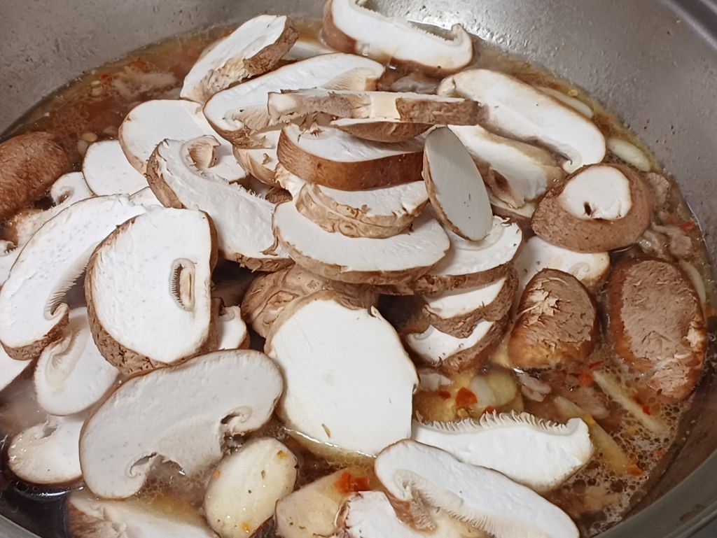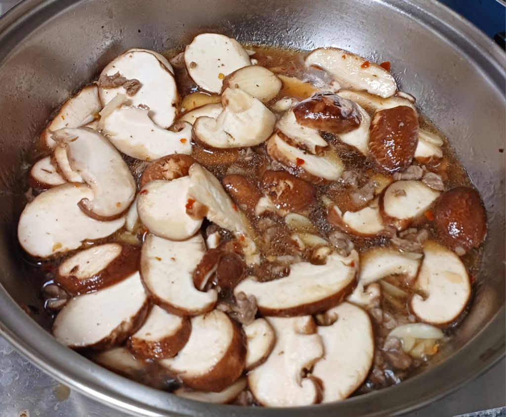 썰어둔 표고버섯 넣어요