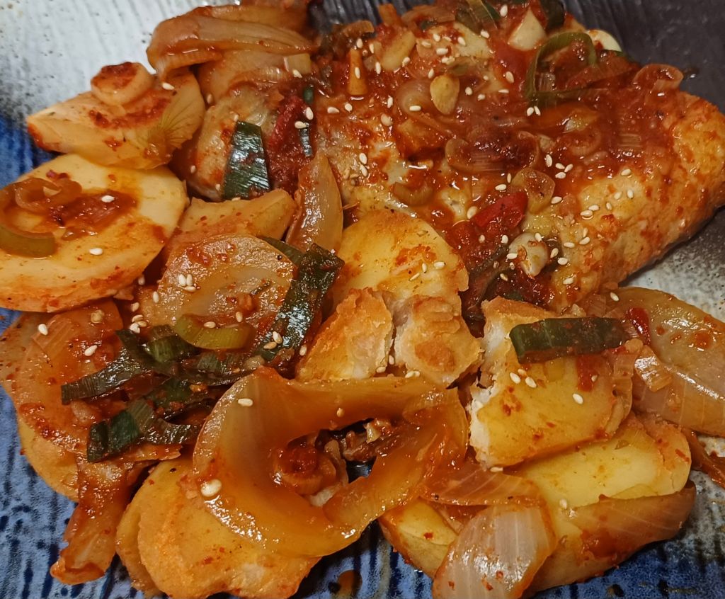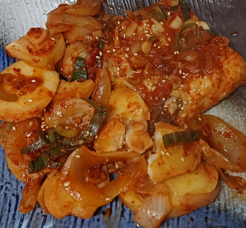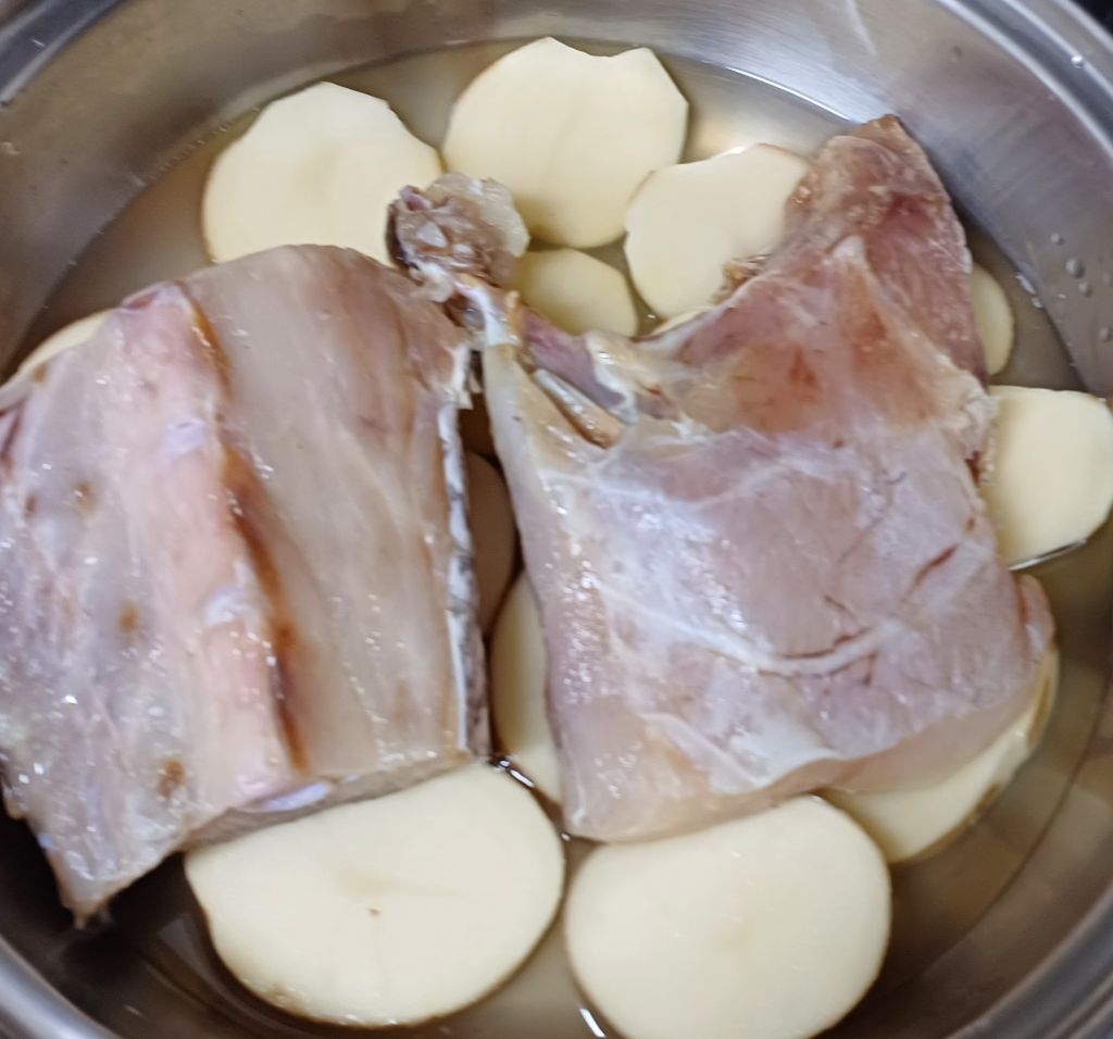 감자 깔고 지졌어요