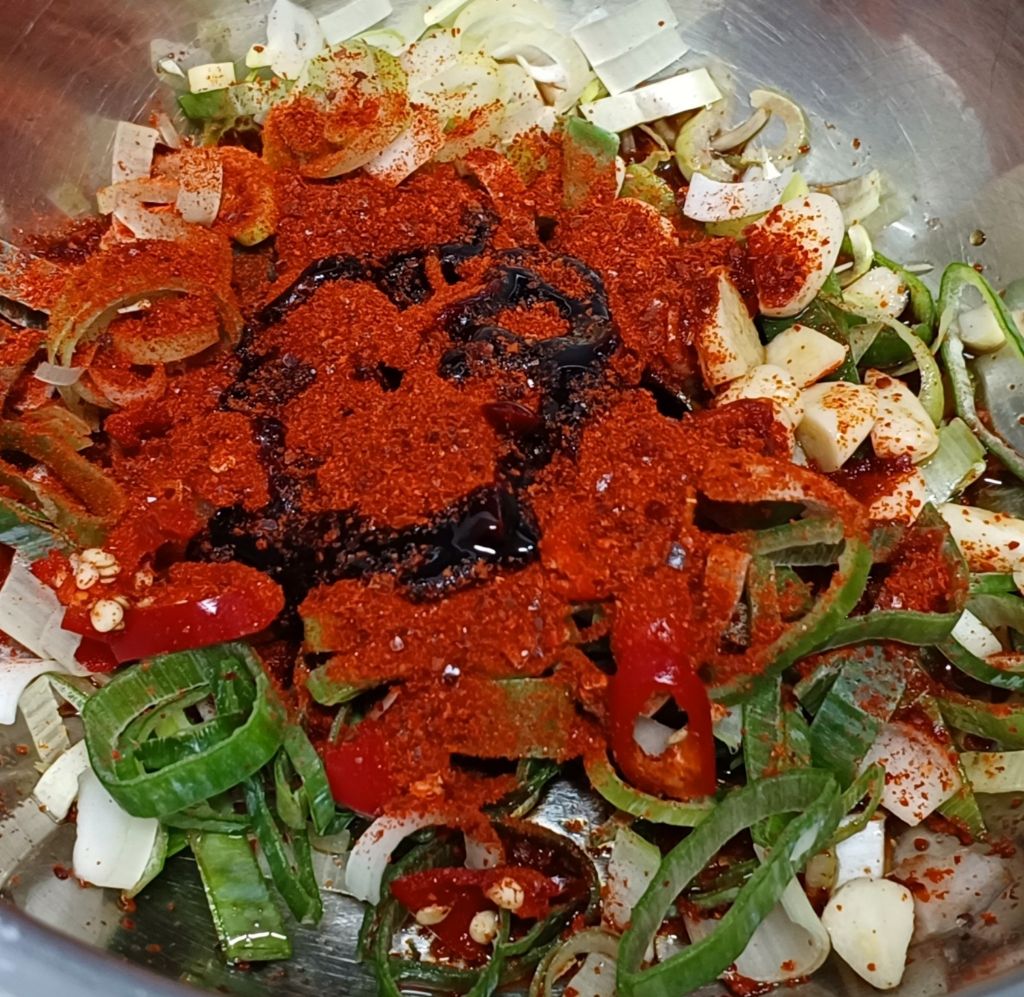 고추가루.굴소스.복숭아청.후추.간장