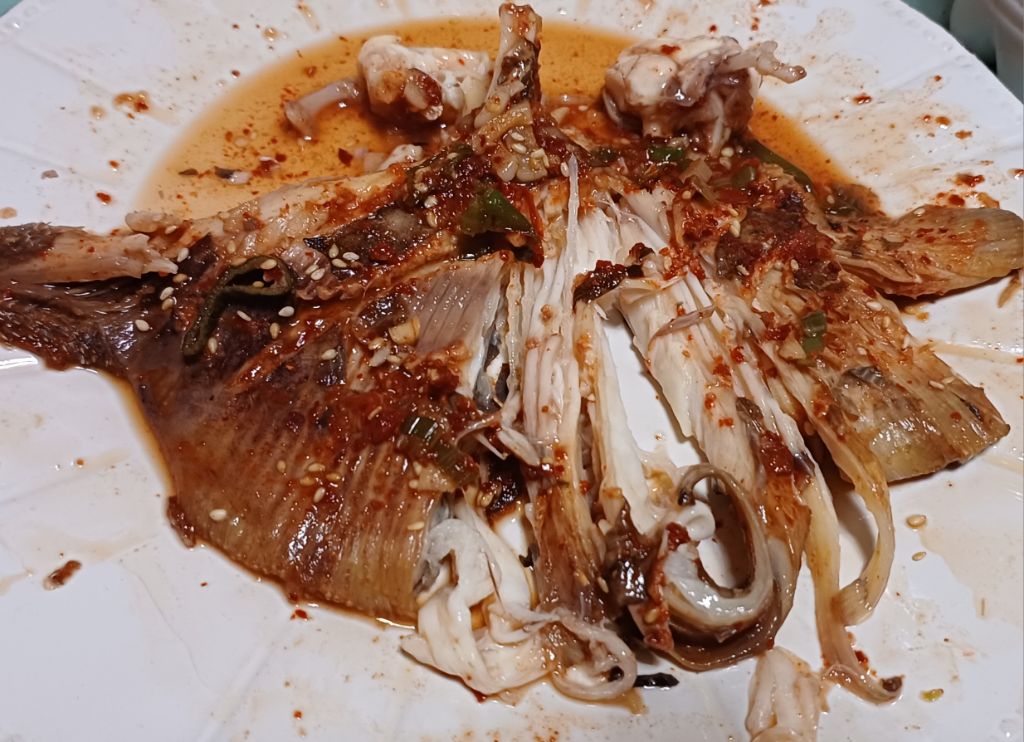 한마리 접시에 담었고