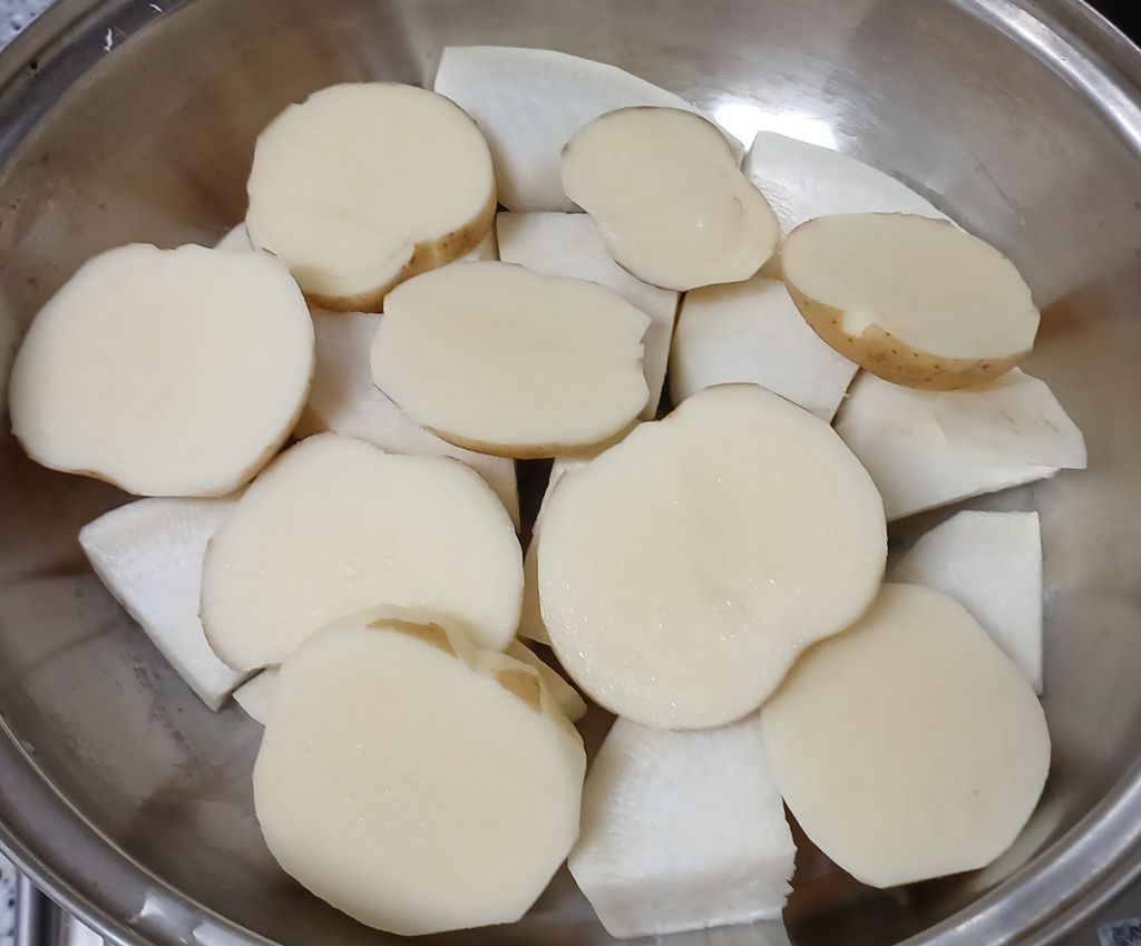 양파와 감자 깔고