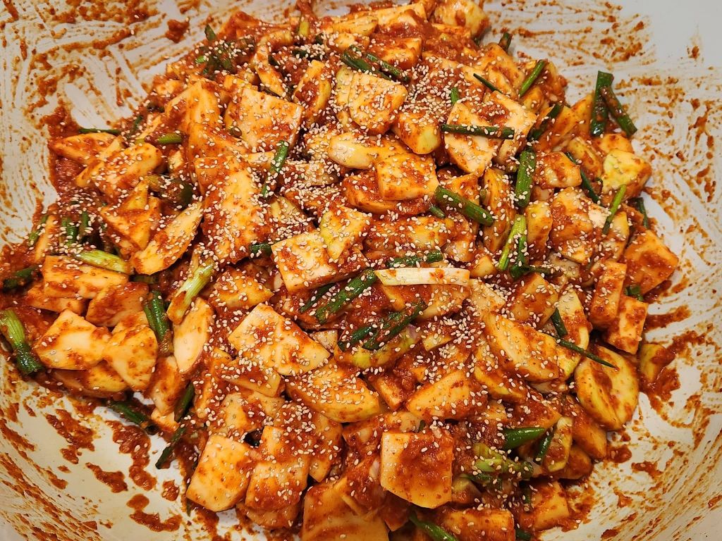 깍두기랑 석박이 그리고 생채와 장아찌 담궜다는
