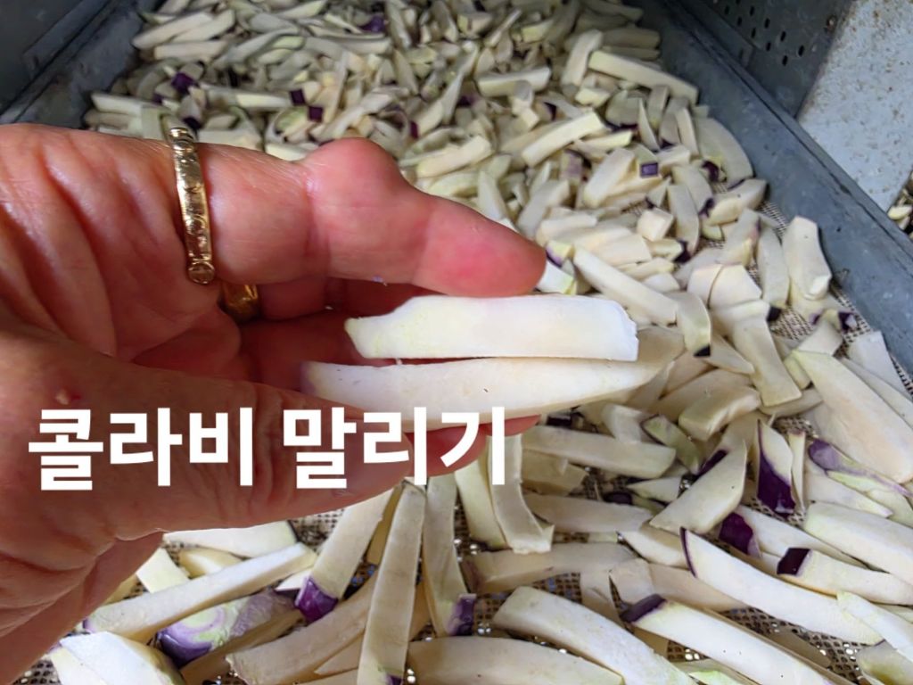 하려고, 씻어 잘라 말리는 콜라비말랭이와 장아찌