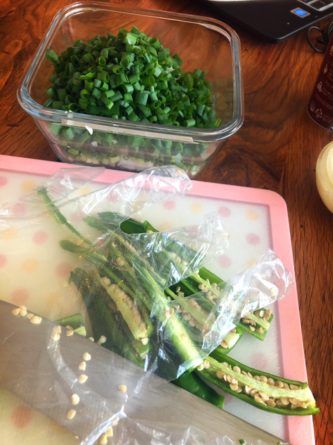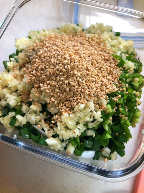 쪽파,마늘, 양파, 깨, 홍매실청,후추가루, 참기름 넣어요~