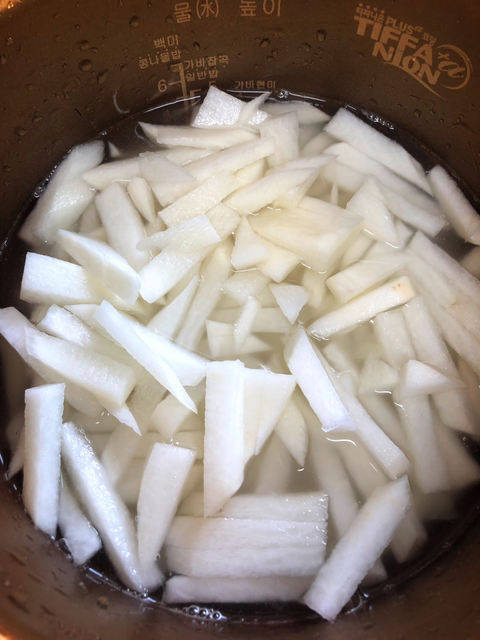 빠른 취사로 해줘야 무가 무르지 않아요.