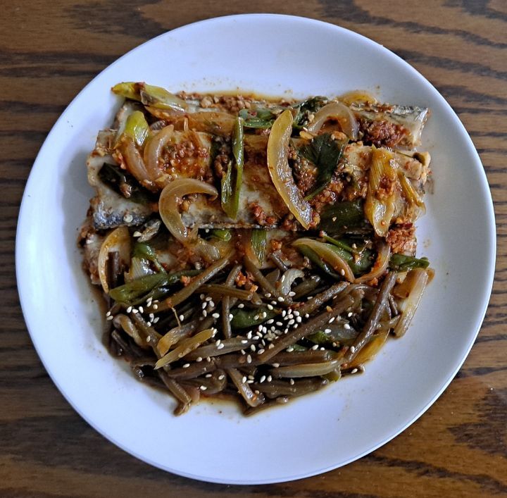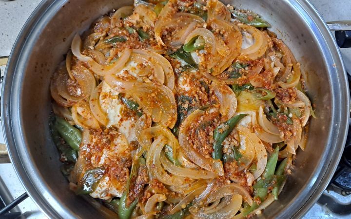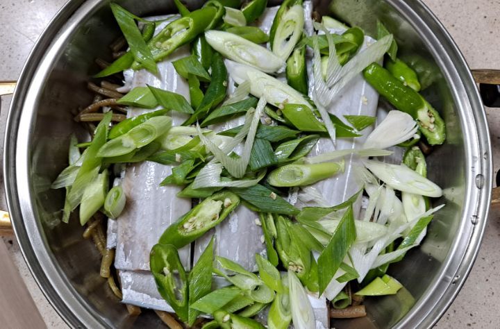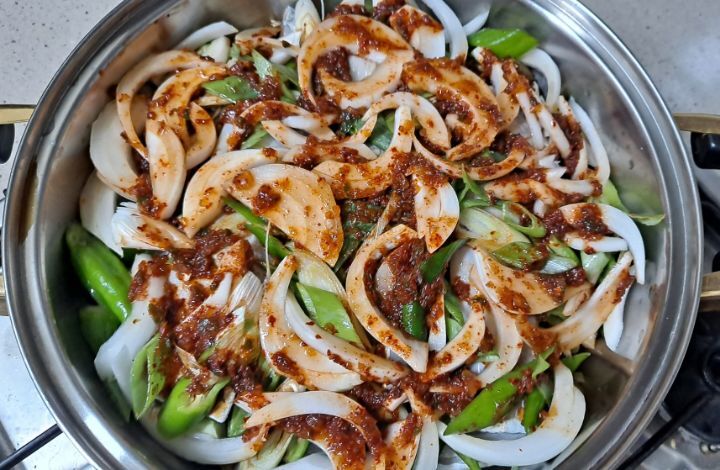 양파도 듬뿍 얹어 양념장 뿌려주고
