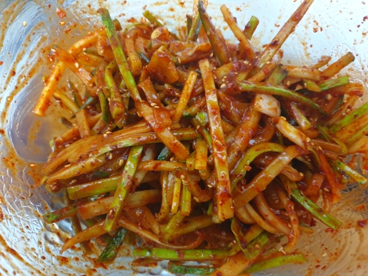 물기가 생기지만 이대로 무치면물이 조금덜나오더라구요