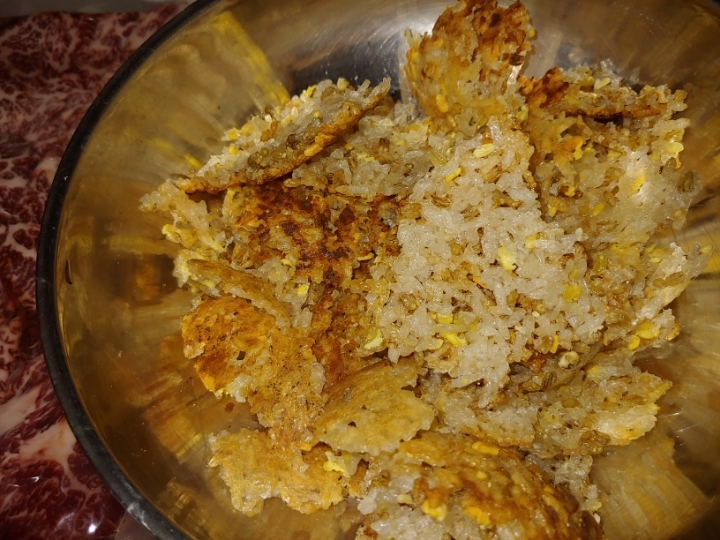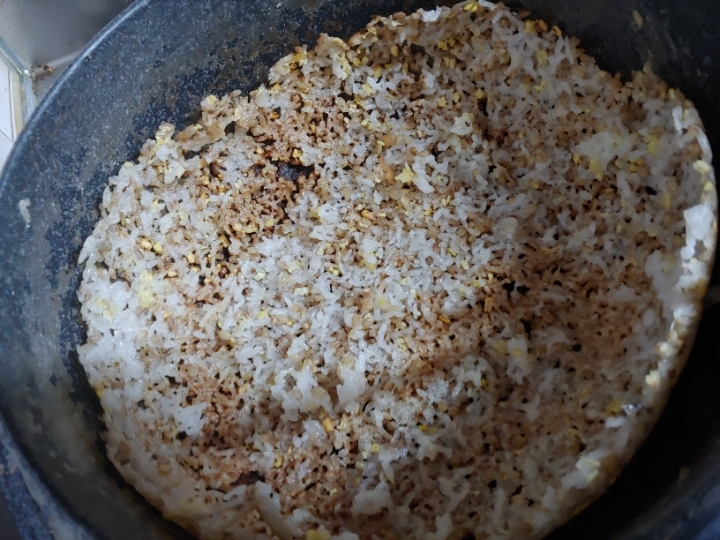 녹두를 넉넉히 넣고 밥을 짓고 누룽지를 만들었습니다.