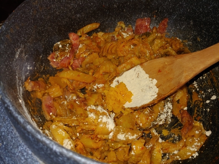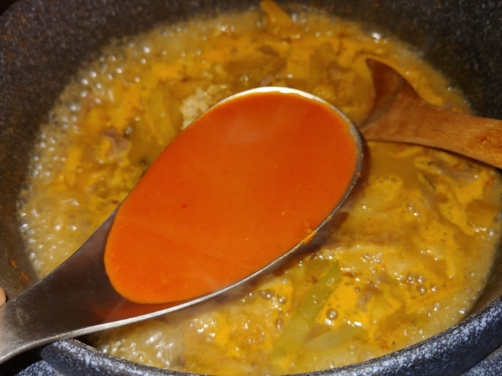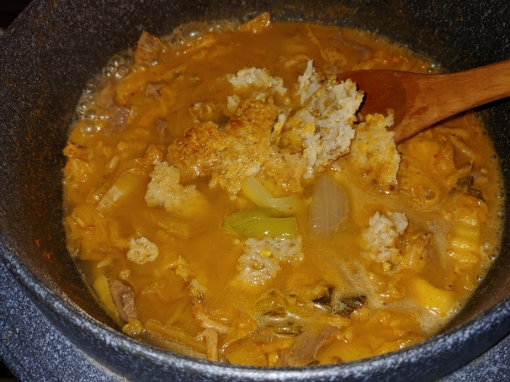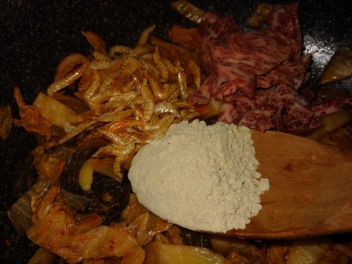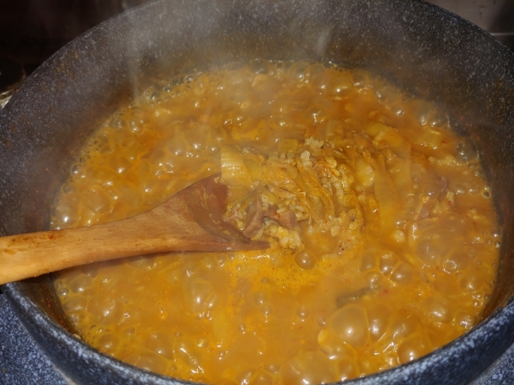 간은 김칫국물로 맞춥니다. 그래야 얼큰하고 맛있습니다.