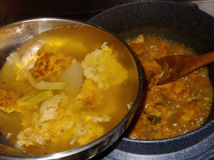 고기넣고 멱국 끓이려했는데 저녁에 누룽지 만들어 놓은것하고 션하게 김치누룽지죽 끓여야겠네요~