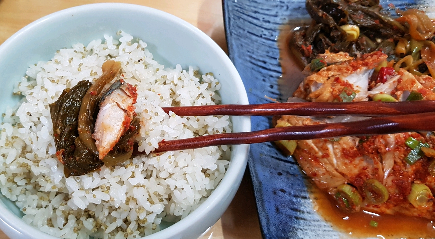 작성자심재순(서울강서구) 작성시간 20.10.13 조밥에 김치고등어 올려서 한입~