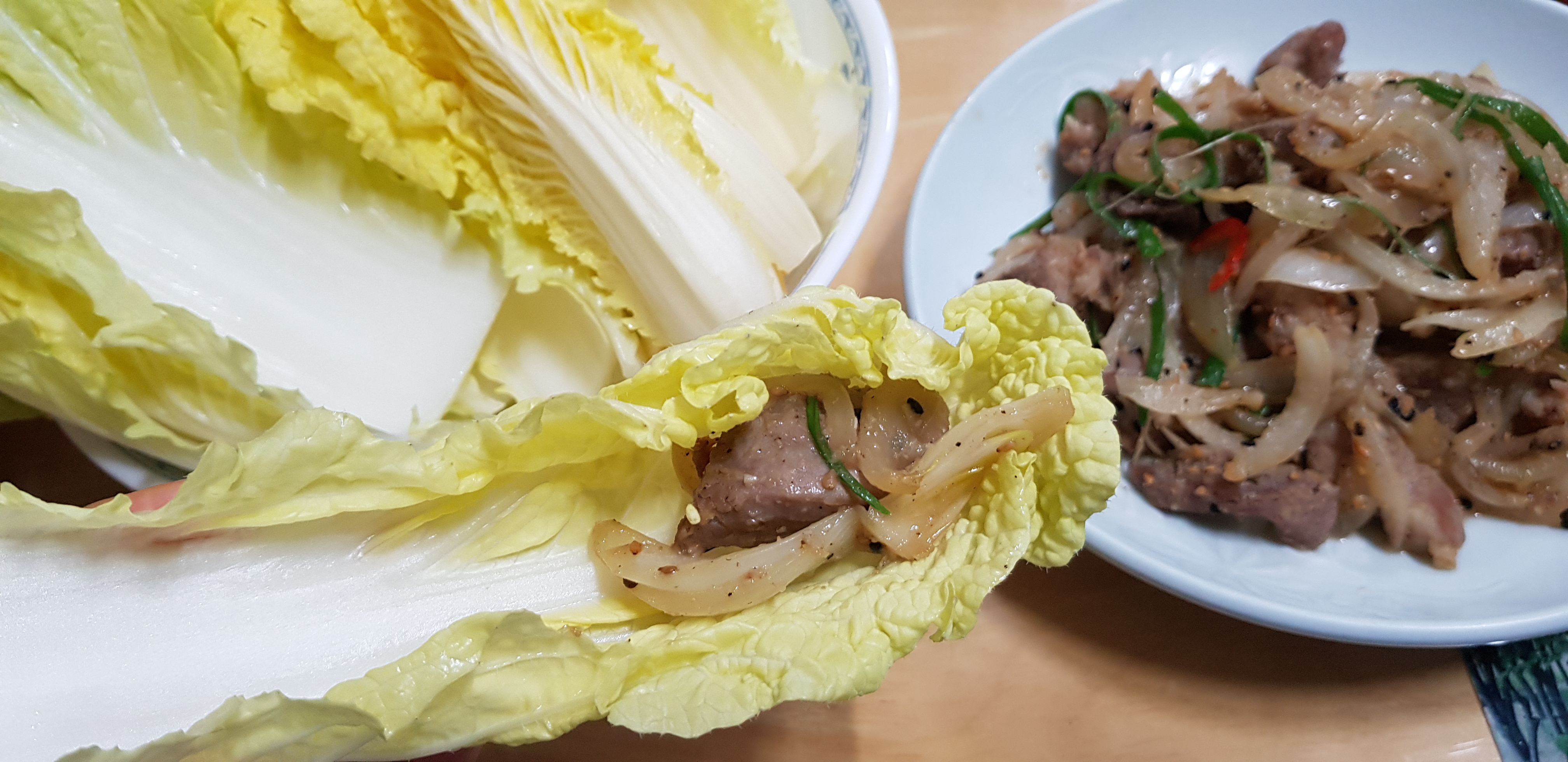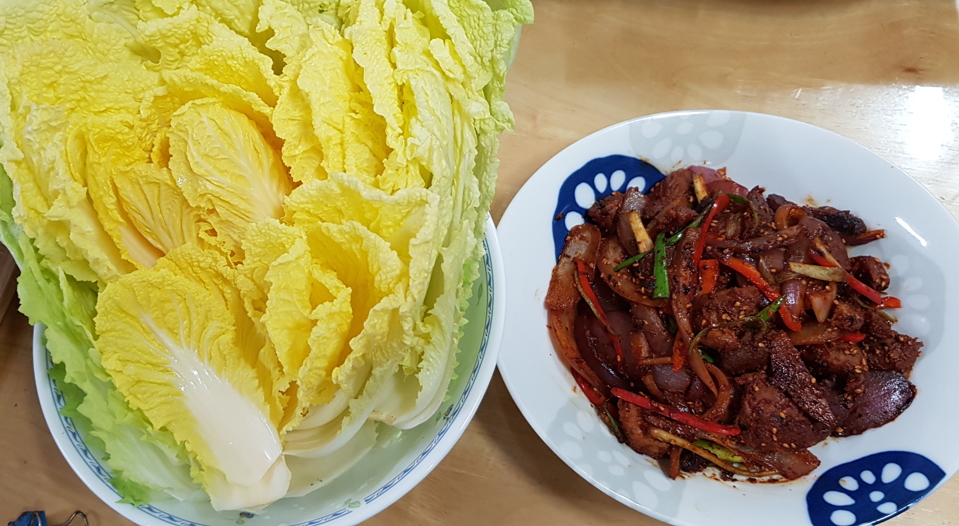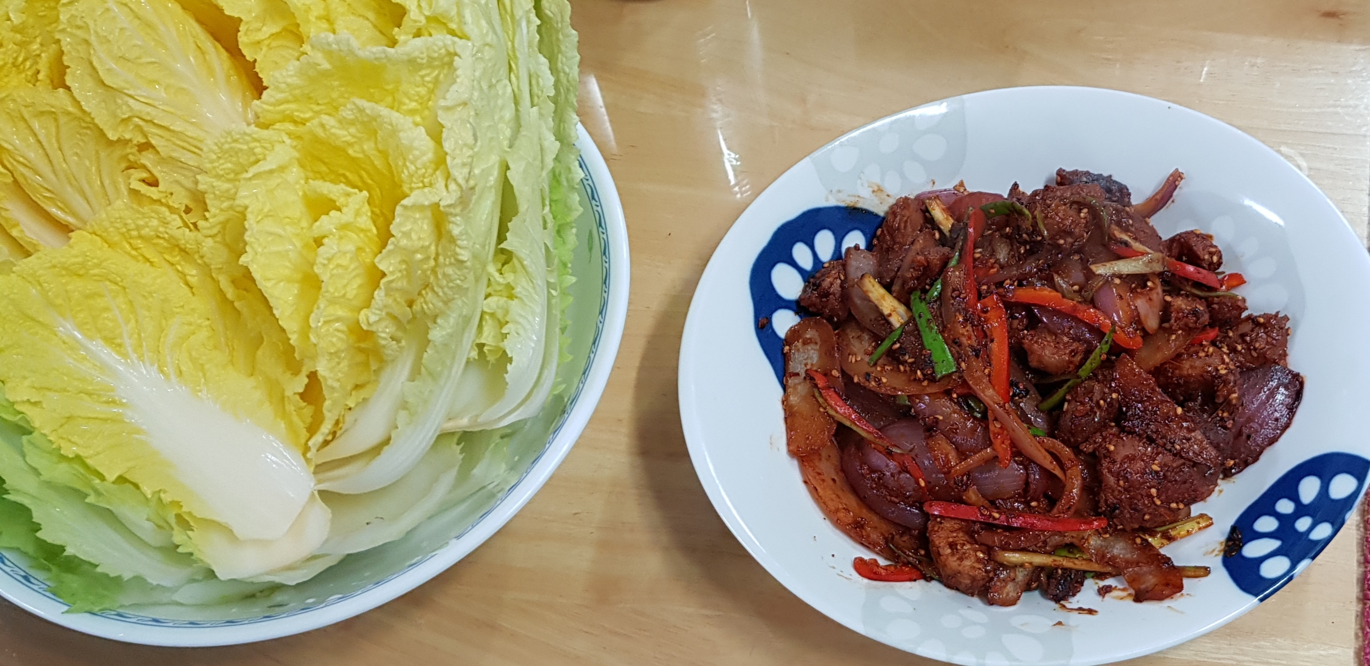 돼지고기만 볶아서 쌈싸서 먹었네요