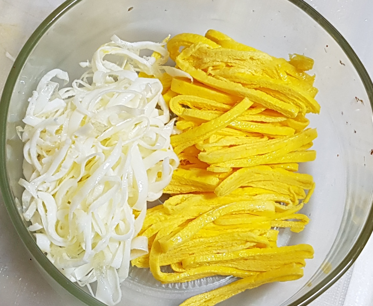 계란 지단 채썰어서 그릇에 담어두고 쓰지요