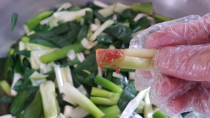 절여진 대파에 콕 찍어 먹어 봐서 짭짤하다 싶으면 간이 맞는 거랍니다.
